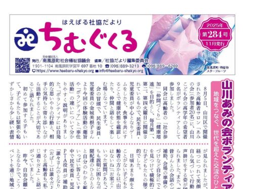 社協だより2025(令和7)年11月号 2025年11月1日 新着情報 社協だより発行 by 社協スタッフ02. 社協だより2025(令和7)年11月号発行しました 社協だより「ちむぐくる」11月号(284号)5.21MB(PDF) 前の記事 次の記事