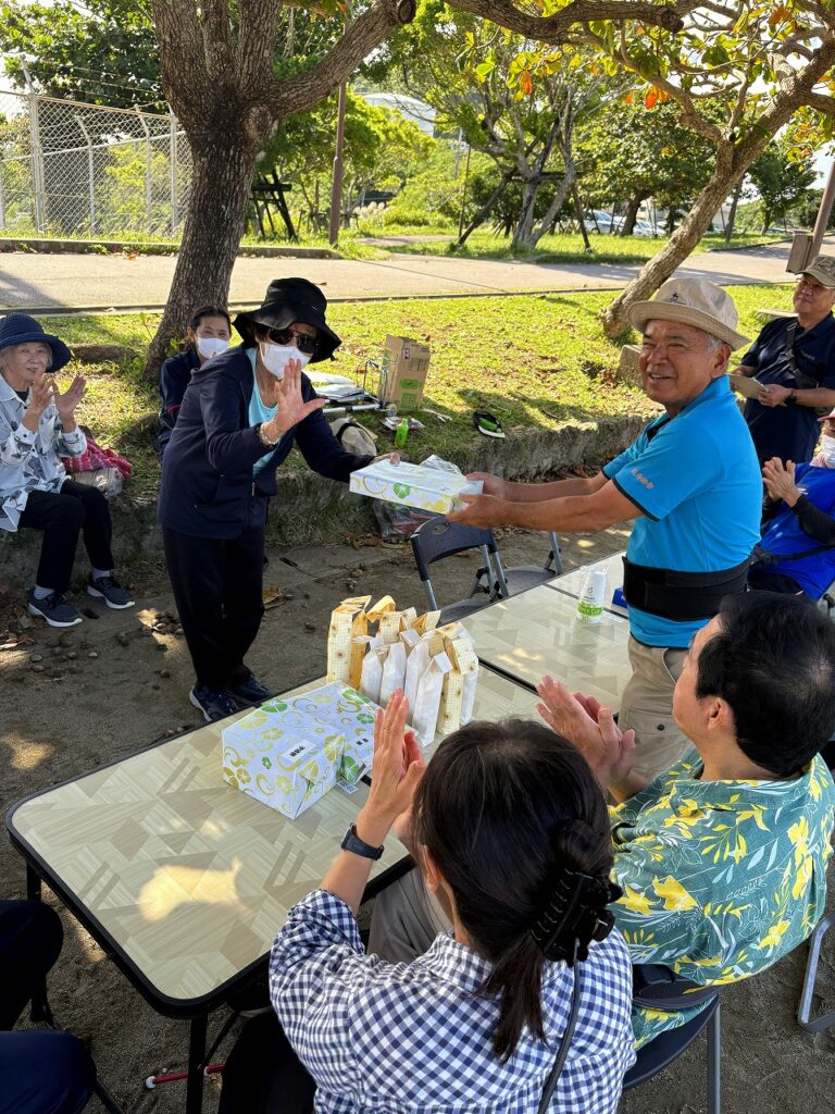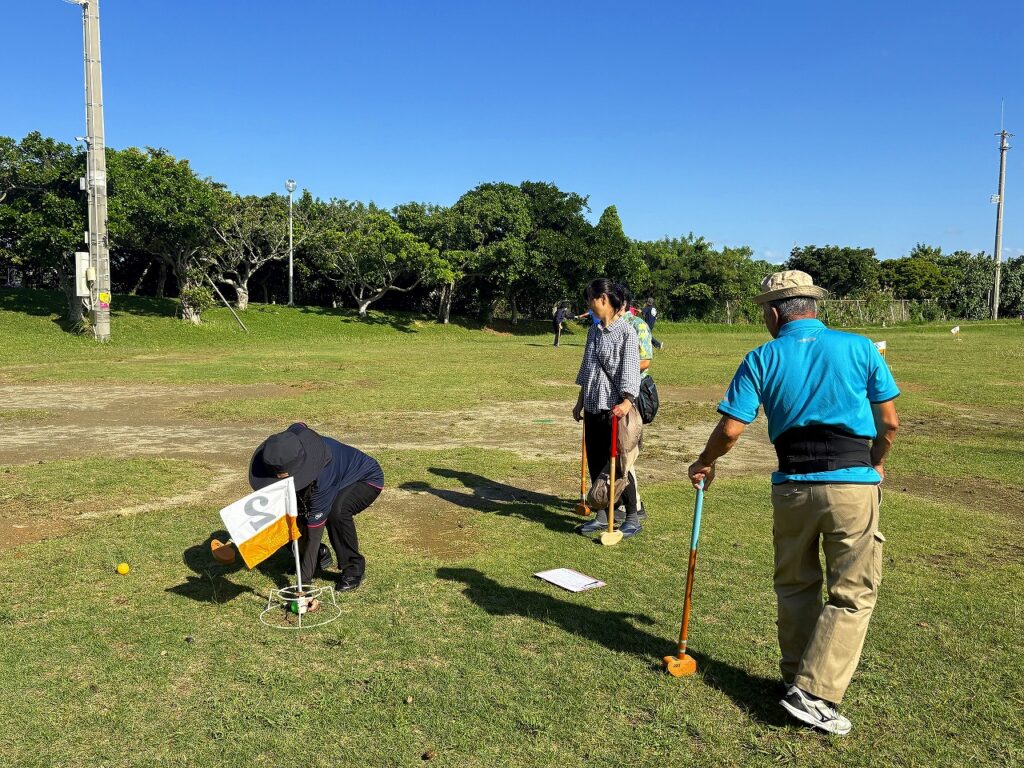 グラウンドゴルフ大会を開催しました 2025年11月24日 新着情報 身体障害者福祉会活動 by 社協スタッフ02. 南風原町身体障害者福祉会 11月16日(日)本部公園にてグラウンドゴルフ大会を開催しました。 当日は天気にも恵まれ、会員・関係者(民生・児童委員、手話サークル・音訳サークル)あわせて20人が参加し、競技をとおしてお互いの親睦と交流を深めました。 競技の成績は以下のとおりです。 優 勝:金城則文 準優勝:仲座次男(民生・児童委員) 3 位:金城八重子 ホールインワン賞:仲座次男・大城米子(民生・児童委員) 前の記事 次の記事