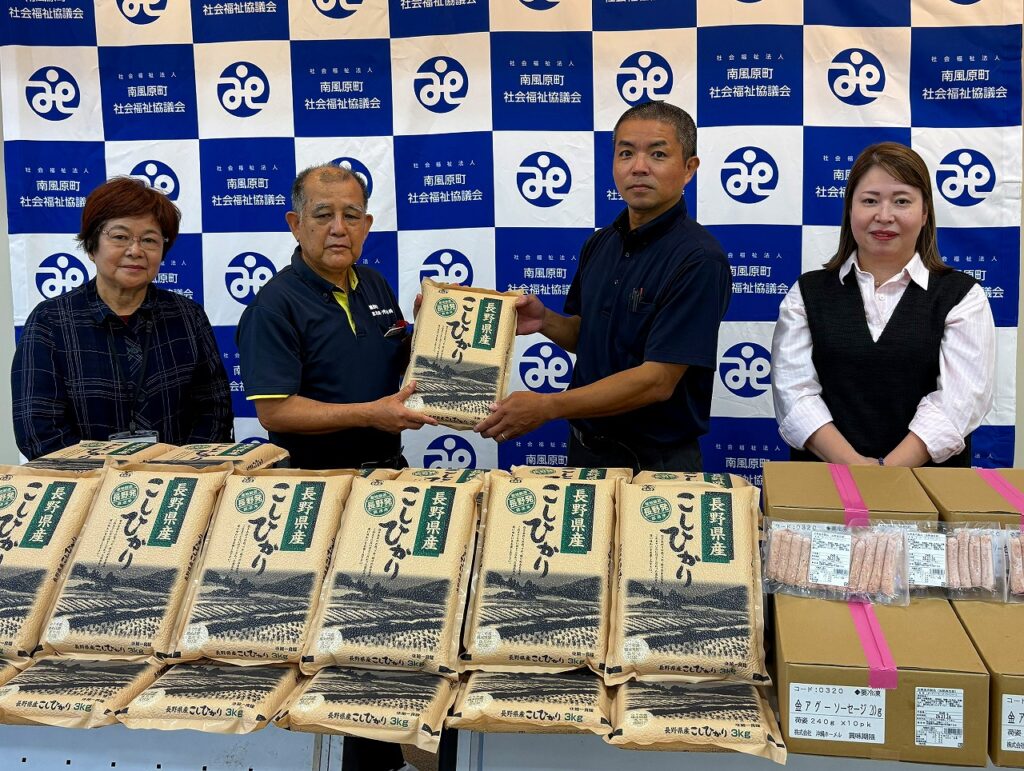 お米・ウィンナーの寄贈ありがとうございます 2025年12月2日 新着情報寄附・寄贈 by 社協スタッフ02. ㈱日新ミートフーズ様 12月2日、㈱日新ミートフーズ様からお米219Kg(3Kg×73袋)、ウィンナー876本(12本×73パック)の寄贈がありました。 親会社の㈱日新電器産業様の会長 石川清朝氏の73歳の誕生が12月1日でそれを記念して令和3年から毎年、本会へ誕生年数の寄贈をいただいております。 ご寄贈いただきましたお米とウィンナーは本会が支援している生活困窮世帯や実施している子ども食堂などに活用させていただきます。 ありがとうございます。 (写真右から)㈱日新ミートフーズ 石川美奈子様、大城修様、本会会長大城正治、副会長照屋静江 前の記事
