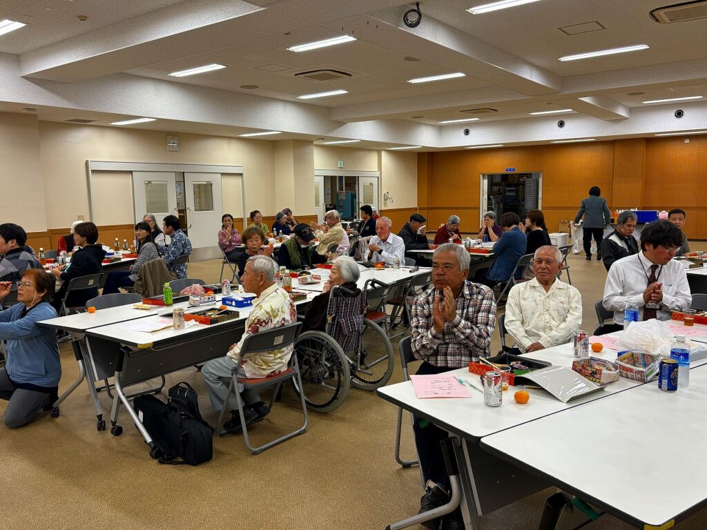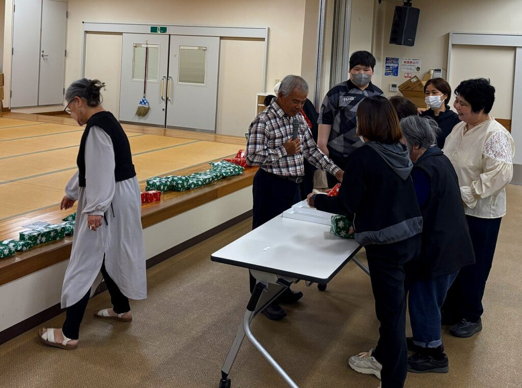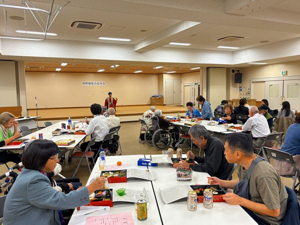 忘年会を開催しました 2025年12月24日 新着情報 身体障害者福祉会活動 by 社協スタッフ02. 南風原町身体障害者福祉会 南風原町身体障害者福祉会では12月6日(土)令和7年度の忘年会を開催しました。会員、関係者あわせて45人の参加があり、赤嶺正之南風原町長の激励のあいさつの後、赤嶺奈津江町議会議長の乾杯の音頭で幕開けしました。 余興では、空手演武、琉舞、日舞、唄三線、楽器演奏など、多くの余興が披露され、終始会を盛り上げていただきました。 終盤では、くじ引きでお楽しみの景品がもらえ、楽しいひとときを過ごすことができました 前の記事 次の記事